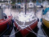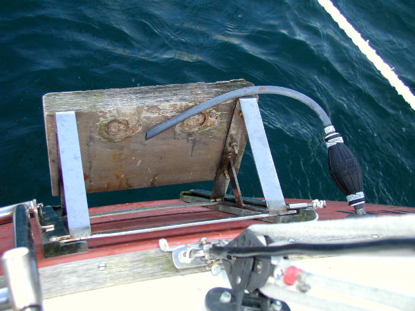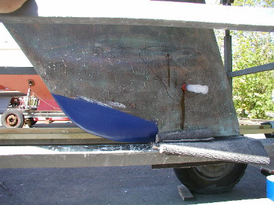 Det var kun en lille en. Men da båden skulle gøres klar efter vinteren, så skulle jeg jo lige kigge lidt nærmere på sagen. Og det kom der en reparation ud af. Klik! og rul lidt ned på siden; det er klubbens hjemmeside. Fin klub!!