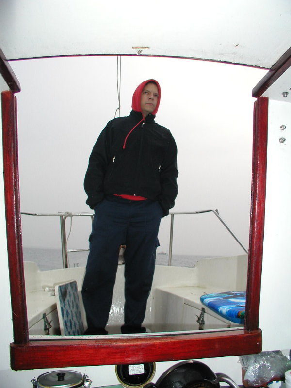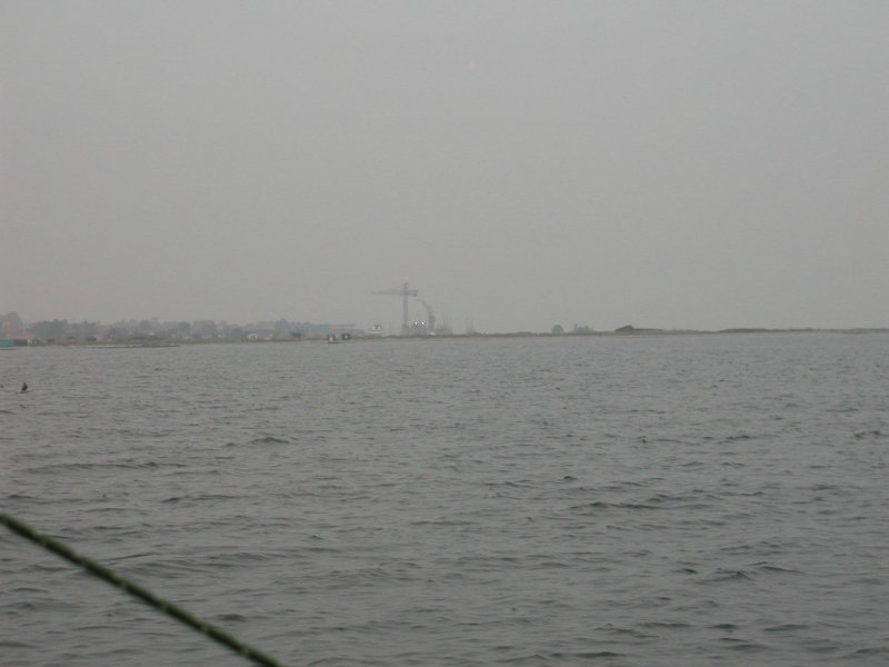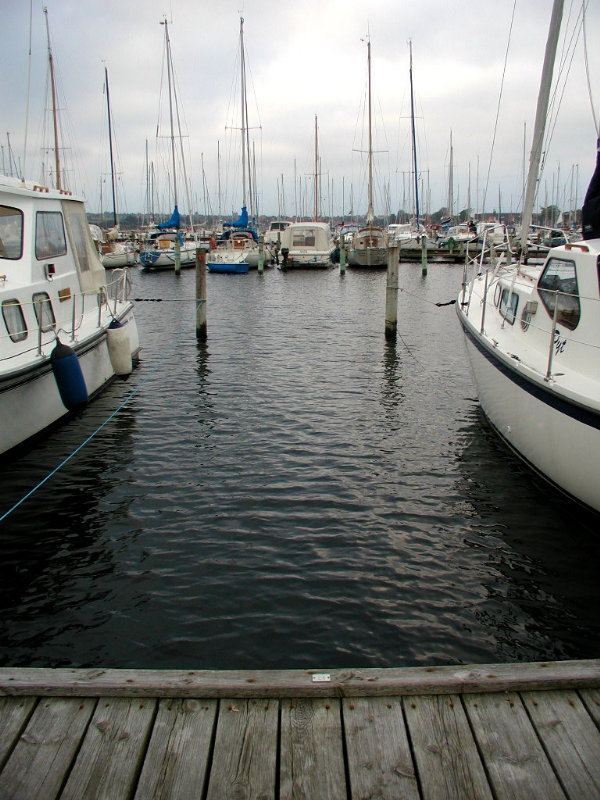 Vores første verbale udvekslinger var: "Hør har du ingen motor?", "Jo, indtil for ganske nylig". Det var noget af en bet at mangle motoren. Frands overvejede at tage hjem og hente en motor. Men det kan jo også lade sig gøre at skubbe/vrikke en båd. Det stormede en halv pelikan, og vi overvejede længe. Frands overvejer altid længe, og det havde så den følge at intet gik galt. Og jeg lærte en hel masse. Som sagt, vi overvejede længe. Så gav vi det en chance. Tilløb op mod vinden, over på den anden side af bassinet. Så langs stolperne ud mod enden af den side. Og så skulle vi rundt og mod vinden på et barsk stykke. Det måtte vi opgive. Så lærte jeg også det. Altså hentede Frands sin motor og så gik det unægteligt lettere.