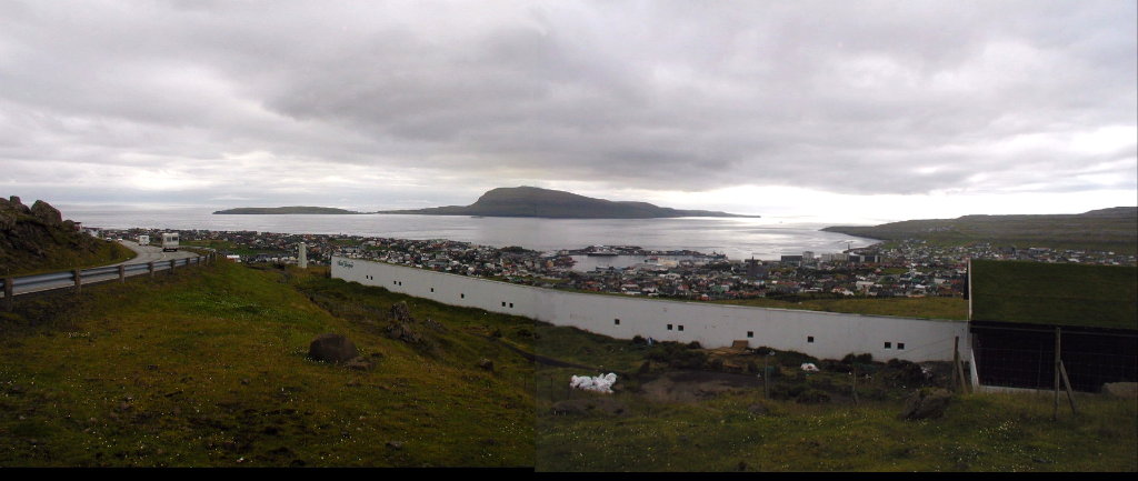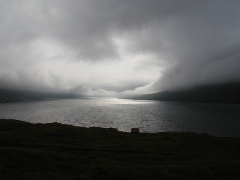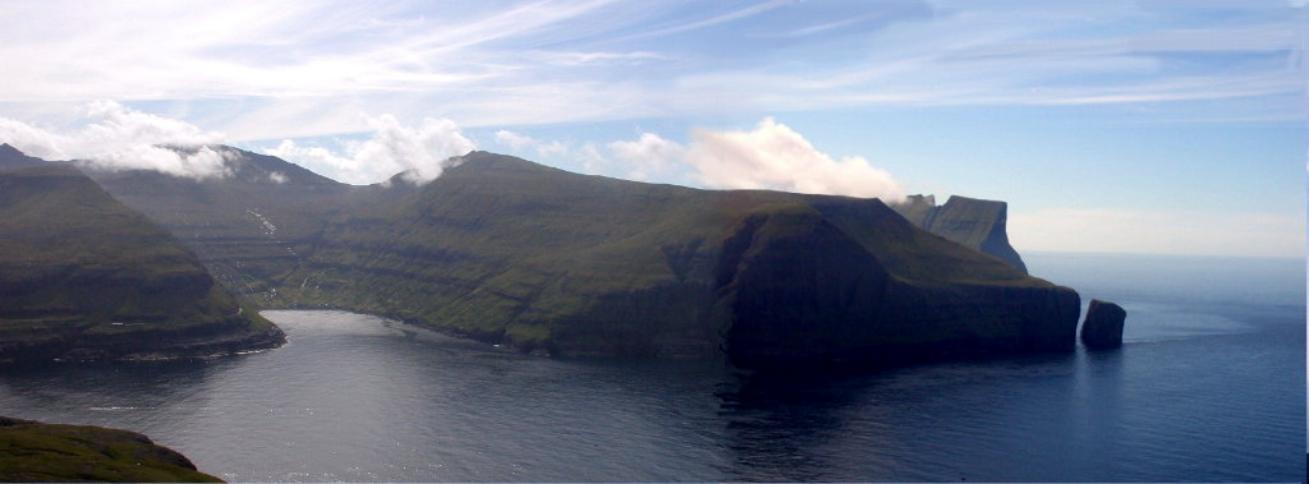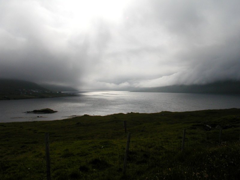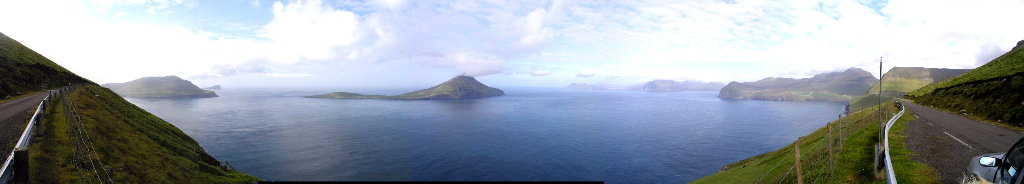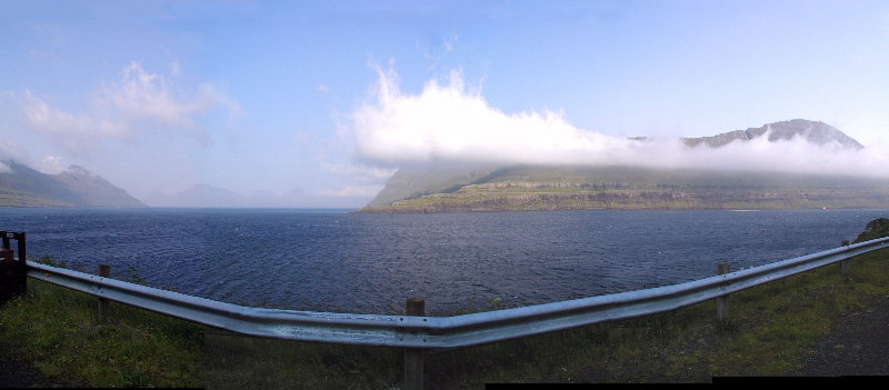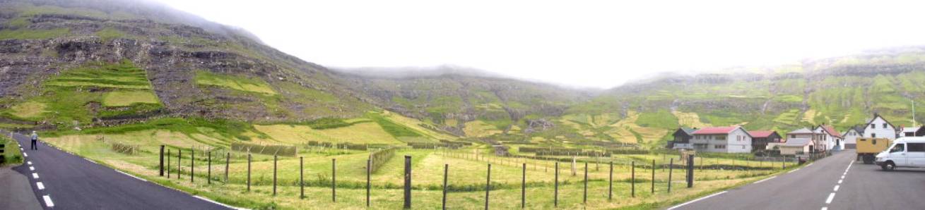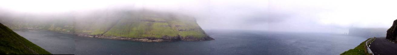 Så til Gjógv. Undervejs fik vi dette panorama(17:27) op igennem Funningsfjørður. Til