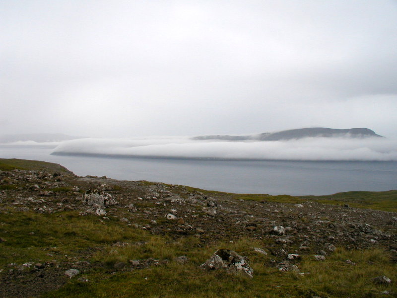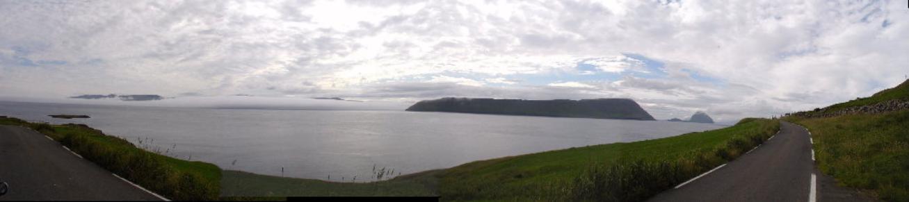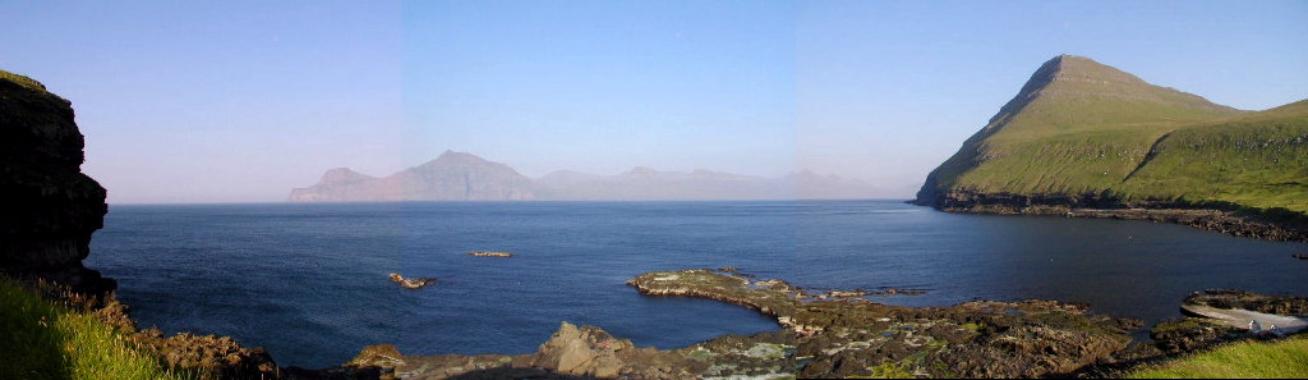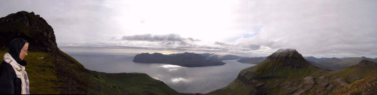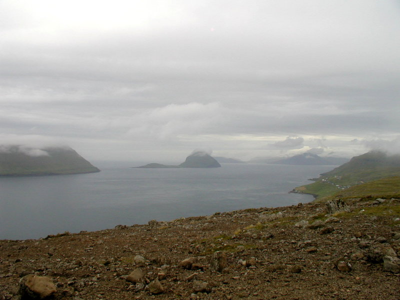 Udsigten mod nordøst med Kalsoy i det fjerne: