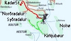 07,18:32 Solnedgang bag Várgar set fra radarstationen.