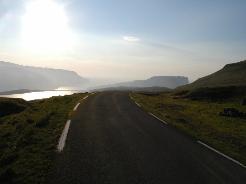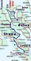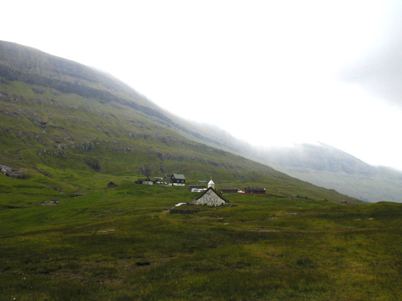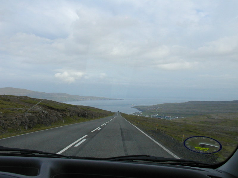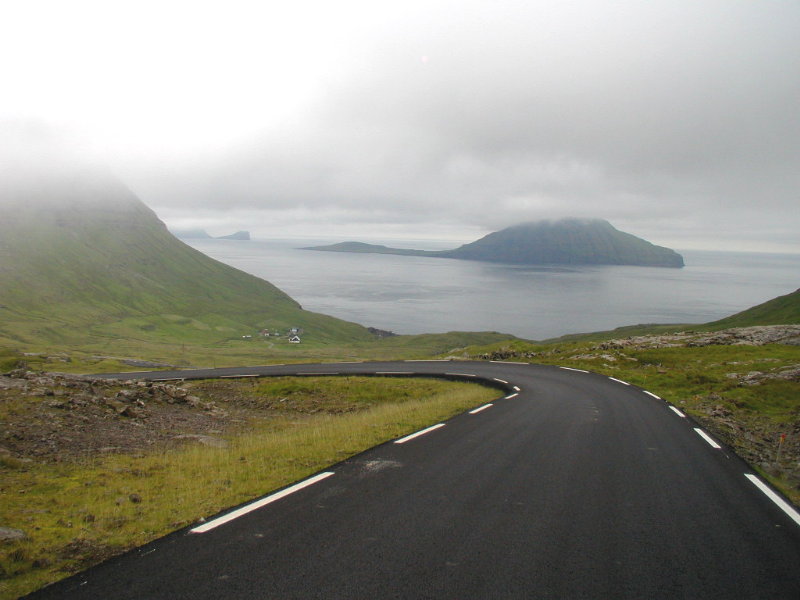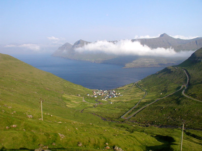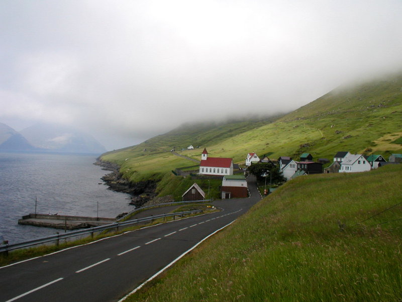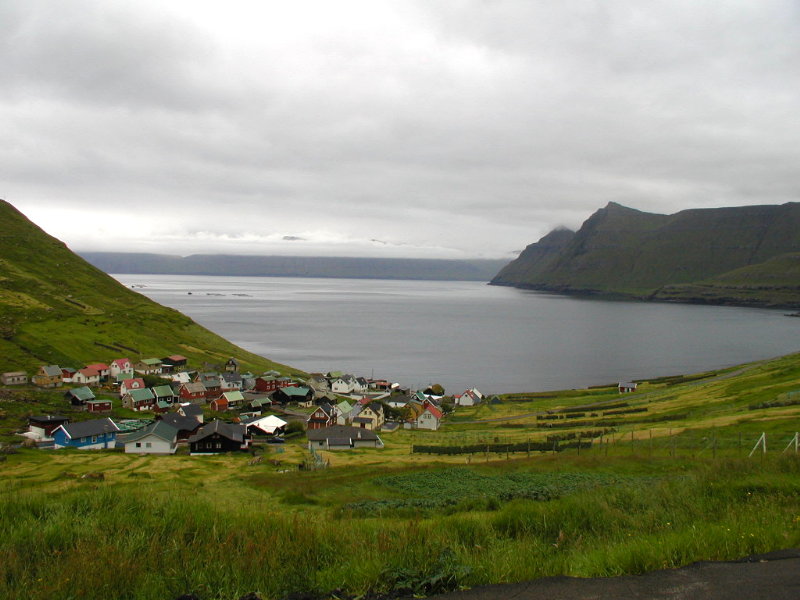 oppe til højre. Fremad til højre i billedet er den vi kørte på til Gjógv.