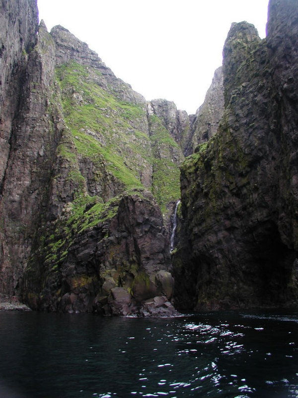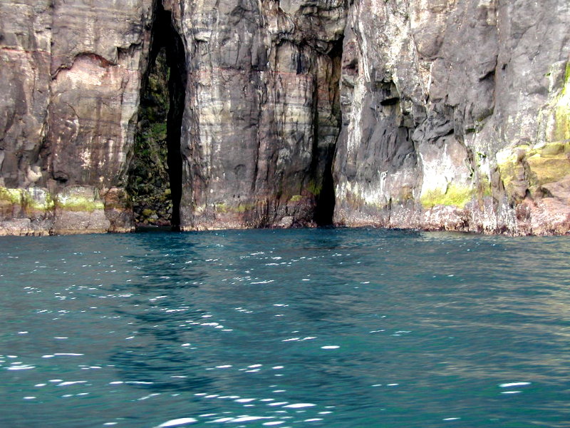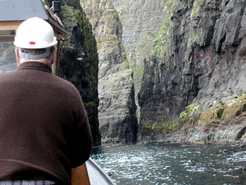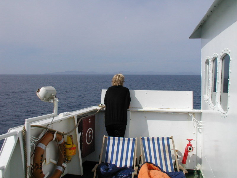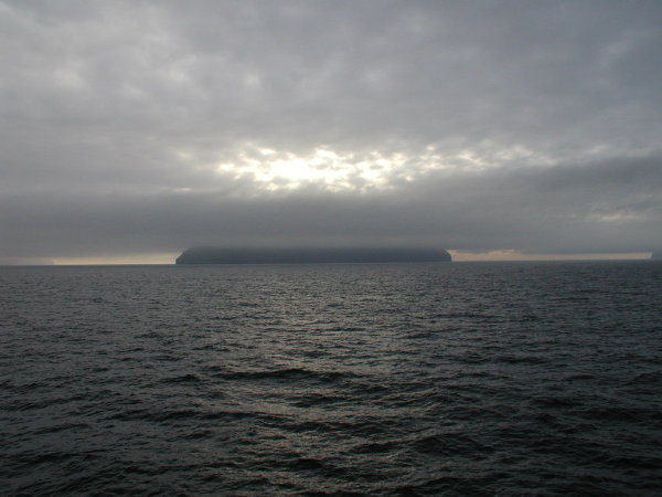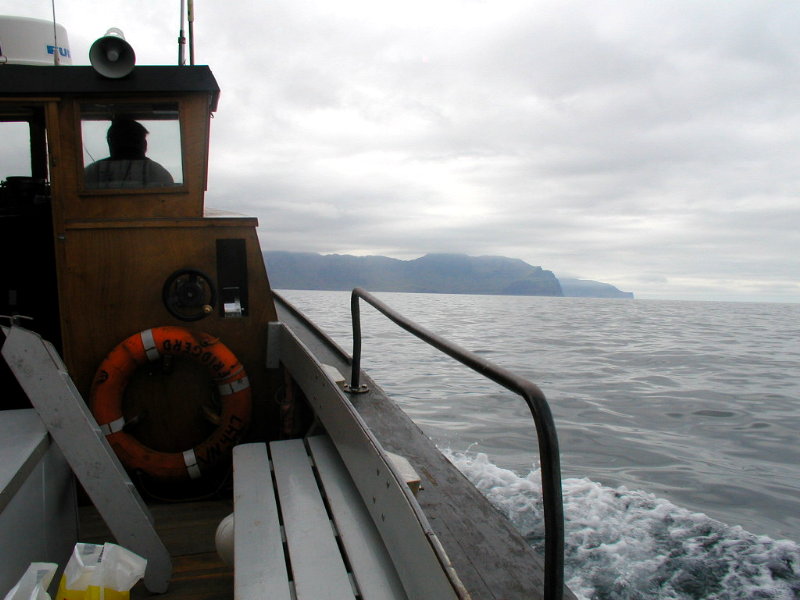08,12:55 Fra sejlturen til Klaksvík. Aner ikke hva’ vi ser på. (Vi ser mod nord, så det burde være Borðoy med Kunoy/Borðoy i baggrunden.)