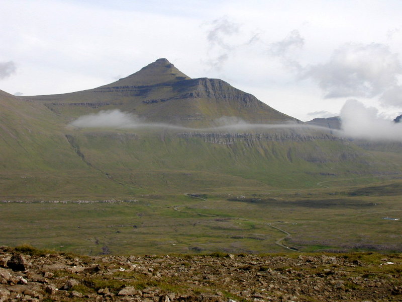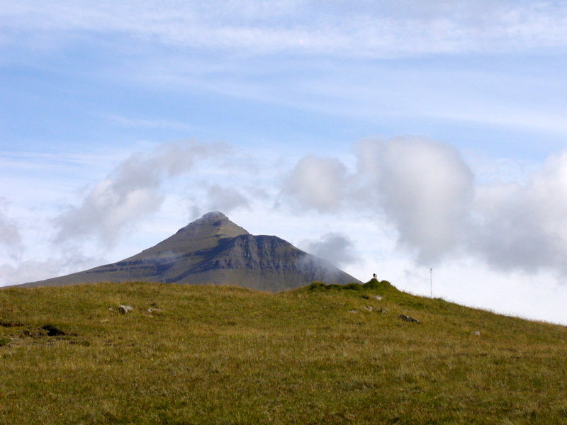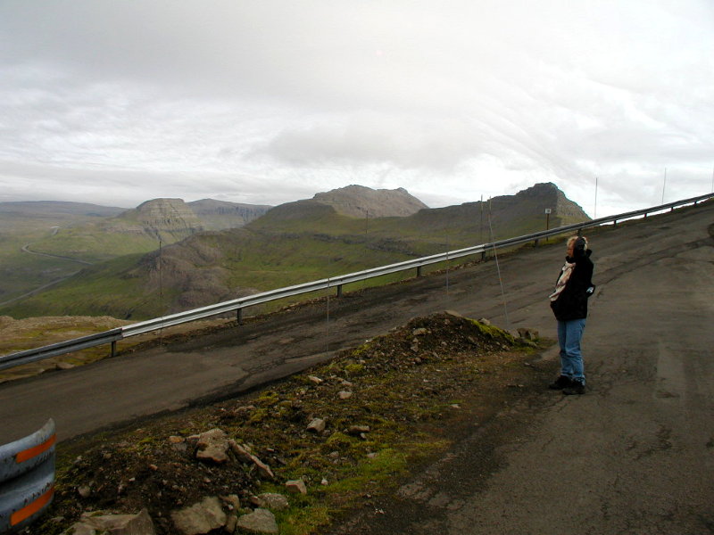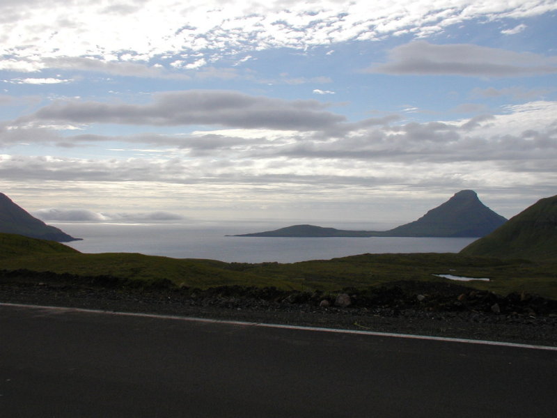 På vej og over fjeldet havde vi denne dejlige udsigt(17:42) over Funningur. Til højre i