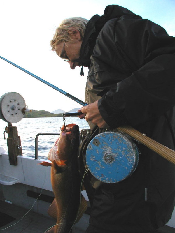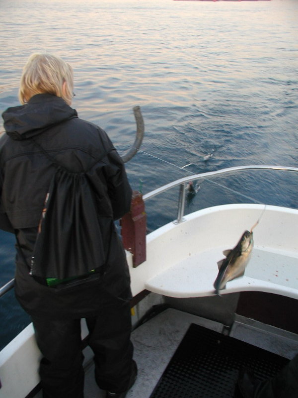 Aftenens største torsk(onsdag d.4.8.20:39. Det er torsken på krogen.)
