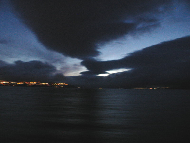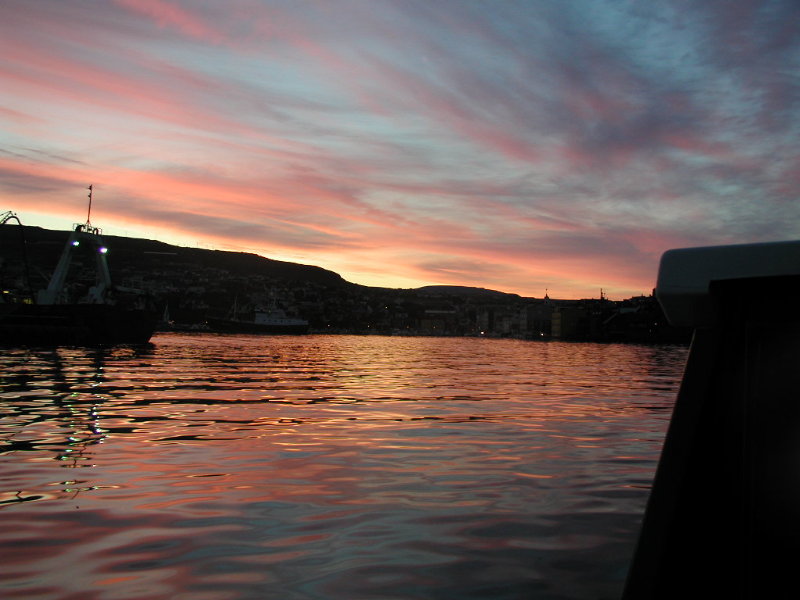06,23:43 Himlen over Tórshavn på vej hjem fra Nólsoy (Nolsø).