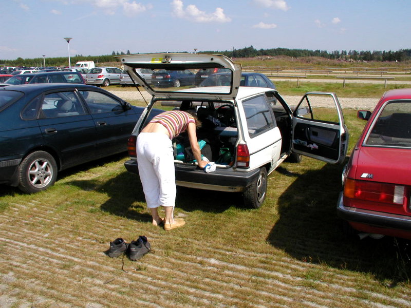 parkeringspladsen kl. 21:00 præcist som aftalt. (Vi tømte bilen og tog et