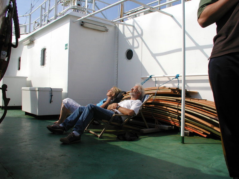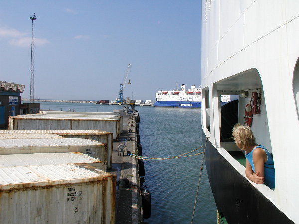 Vi skulle være om bord kl. 15. Og da vi, lidt forsinket, stod
