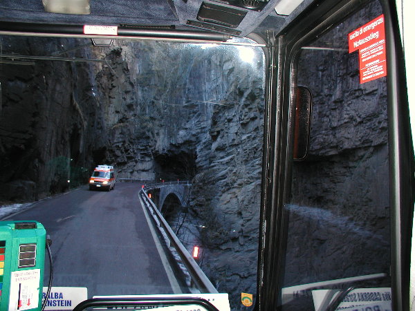 Bolzano, Bozen, er vist hovedstad i det tysktalende område. Vi havde lidt ventetid da vi ankom. Så hyggede vi os i solen, og glædede os ved udsigten. Turen i bus ud af Bozen var temmelig bemærkelsesværdig. På vej op mødte vi en ambulance på vej ned, ups. Der må skaffes hul til vejen.