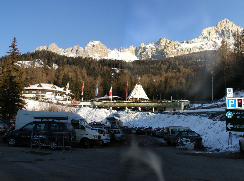 Området var på størrelse med det i Madonna di Campiglio, dvs. i løbet af den første formiddag havde vi løbet fra den ene ende til den anden, dvs. fra Obereggen til Predazzo. Til Predazzo skal man tage liften ned og herefter en skibus til Cavalese, 35 min (Alpe Cermis) eller til Bellamonde, 25 min (Alpe di Lusia).